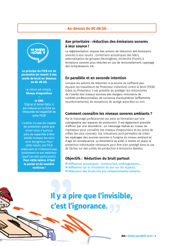 les repérages des sources sonores à l’origine du niveau ambiant et d’agir en conséquence. La dosimétrie va aider à mettre en place la protection individuelle nécessaire pour être bien protégé dans le cas de tâches sur des unités de production à émissions élevées.